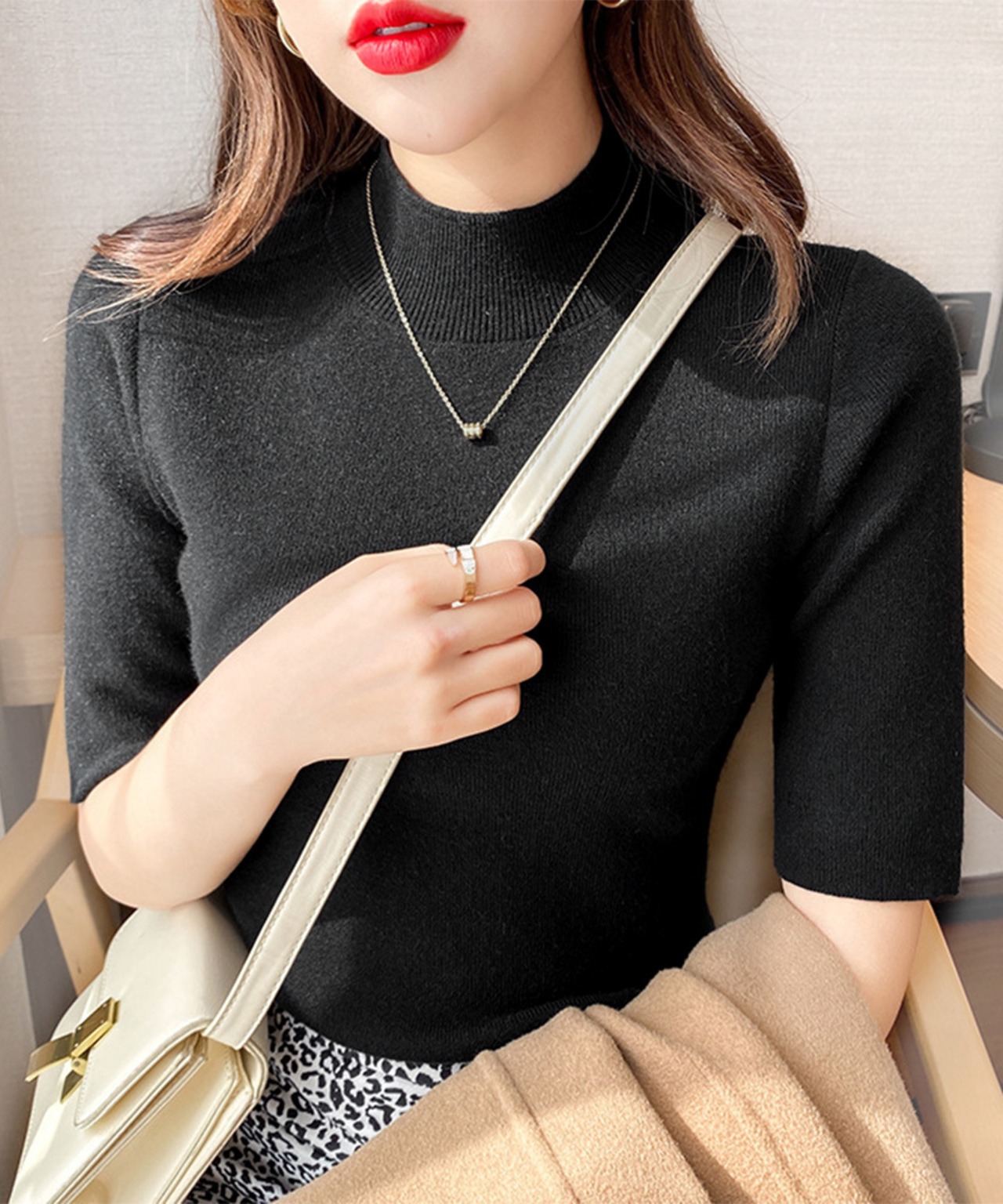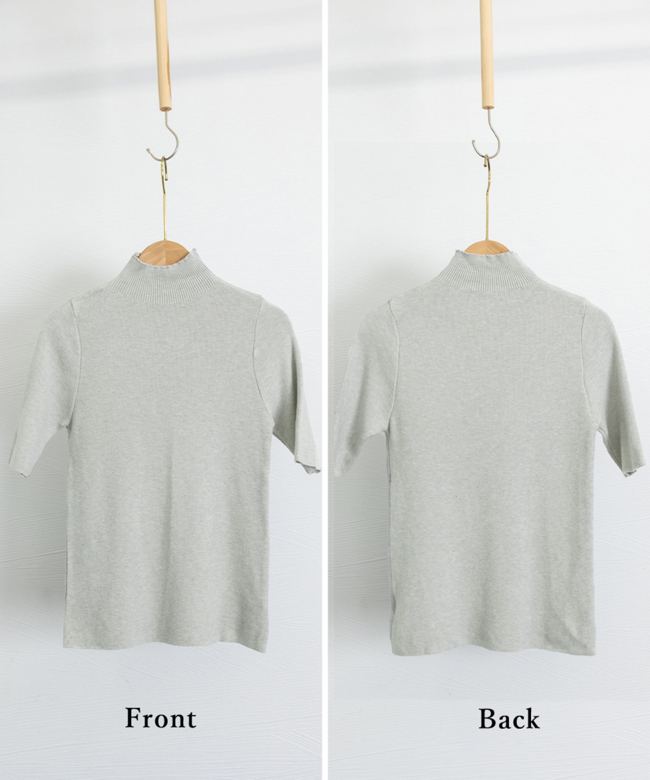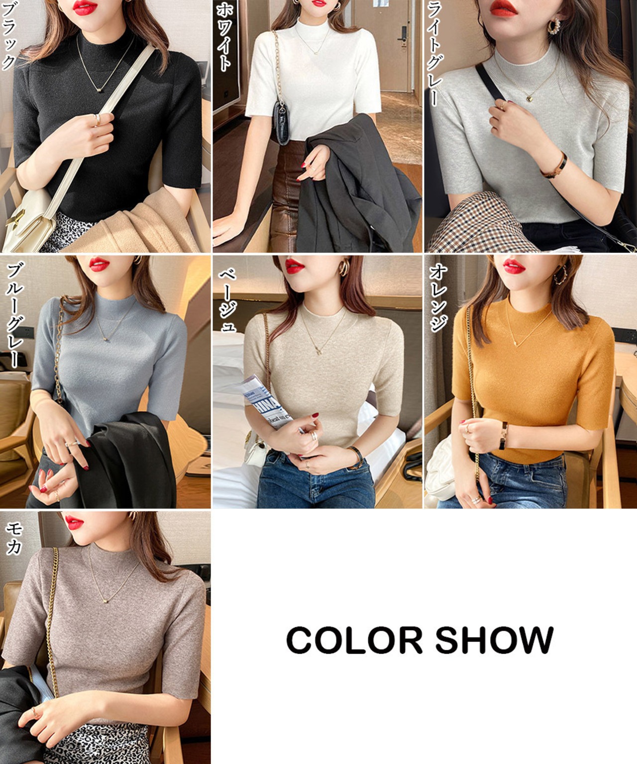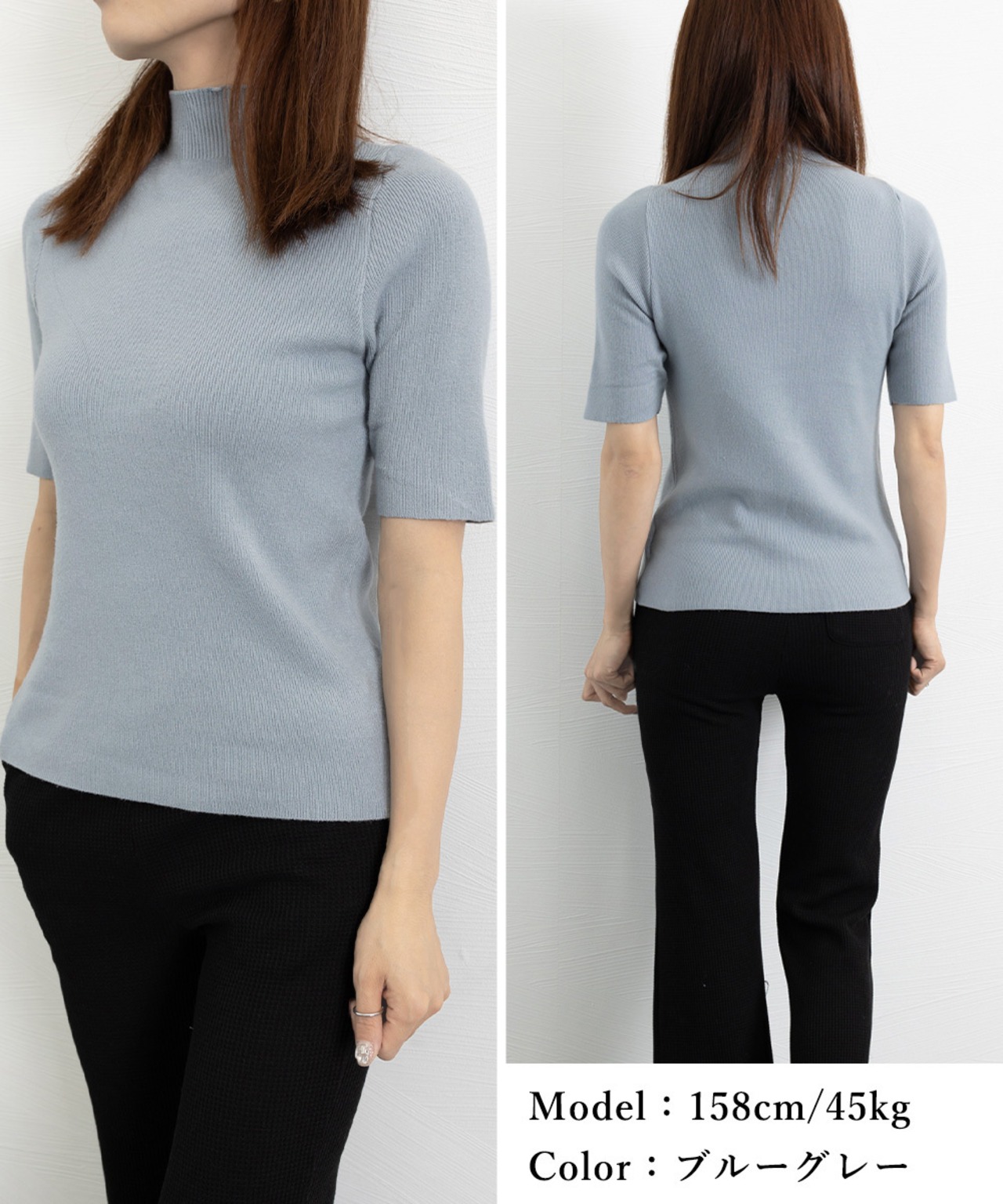 春ニット半袖 サマーニットレディース ハイゲージニット プチハイネック タイトニットTシャツ 着やせ きれいめニットソー