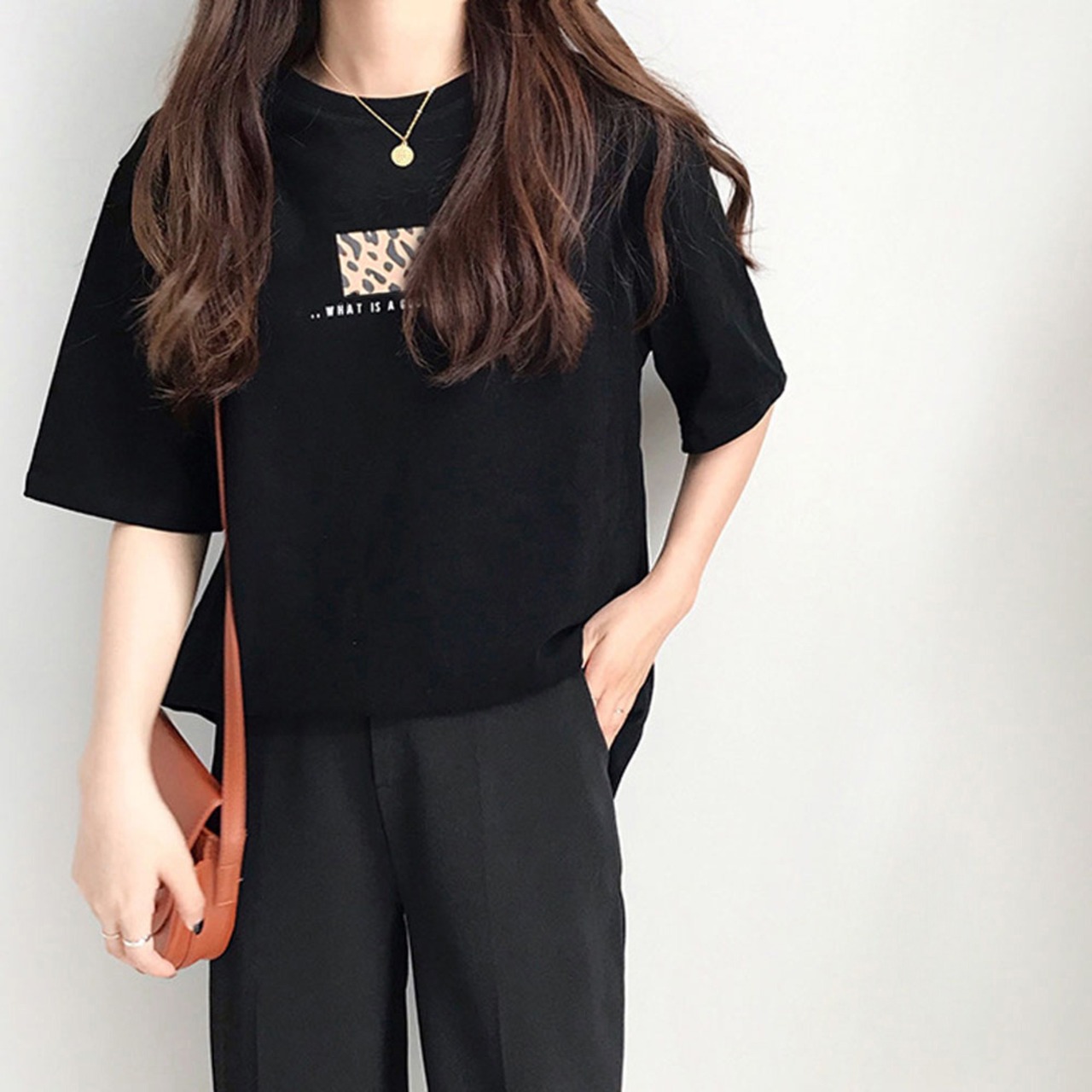 カットソー レオパード プリント 体型カバートップス フロントロゴt プルオーバー カジュアル おしゃれtシャツ 夏春秋