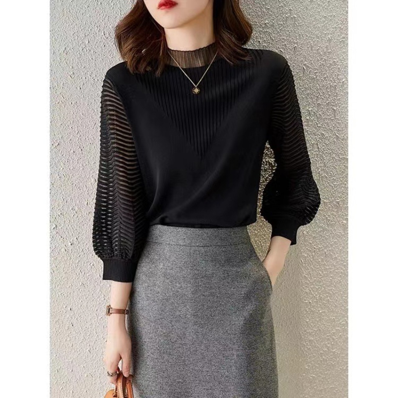 ・袖は透け感があり女性らしい印象を与えてくれます。