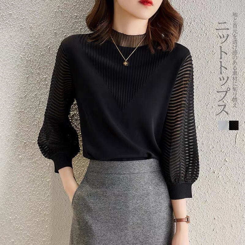 レディース ニット セーター 長袖 トップス プルオーバー きれいめ ハイネック 透け感