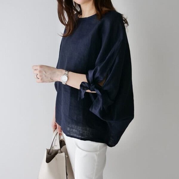 ブラウス 2024年人気新作 トップス レディース リネン ラウンドネック 気質 オシャレ