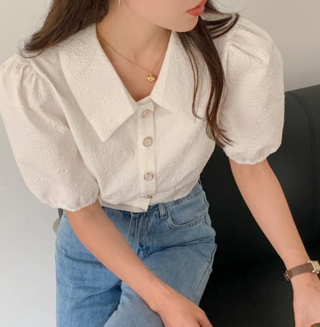 トップス 女 レディース 半袖 パフスリーブ シャツ ブラウス インナー カーディガン