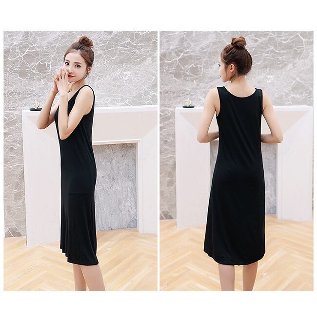 インナー ロングインナー 透け防止 インナーワンピース タンクトップインナー 肌着 下着 ノースリーブ 黒